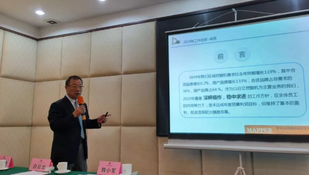 韓總發(fā)言主要包括三個(gè)模塊的內(nèi)容:一,首先總結(jié)了2019年各體系的工作;二,緊接著明確提出2020年公司總基調(diào)定位為“革新·進(jìn)取”,對(duì)2020年市場環(huán)境作出判斷,提出了總的工作方針、各體系的重點(diǎn)工作以及RT預(yù)算目標(biāo);三,最后給大家深入講述了企業(yè)文化,要求全體美鵬人肩負(fù)“共創(chuàng)美好家國”的使命,牢記公司的核心價(jià)值“客戶第一、誠信為本、質(zhì)樸奮斗、崇尚做到”,秉承公司“熱情、認(rèn)真、專業(yè)、高效”的工作作風(fēng),按美鵬工作三要求辦事“用心做事,達(dá)成目標(biāo);按規(guī)定做事,服從領(lǐng)導(dǎo);同事間不計(jì)較,溝通、包容、支持”,共同努力實(shí)現(xiàn)“致力成為華南地區(qū)最優(yōu)秀的工程設(shè)備及工程設(shè)備使用方案的提供商”的愿景!